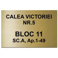 Placuta gravata adresa bloc 30x15 cm, aurie
