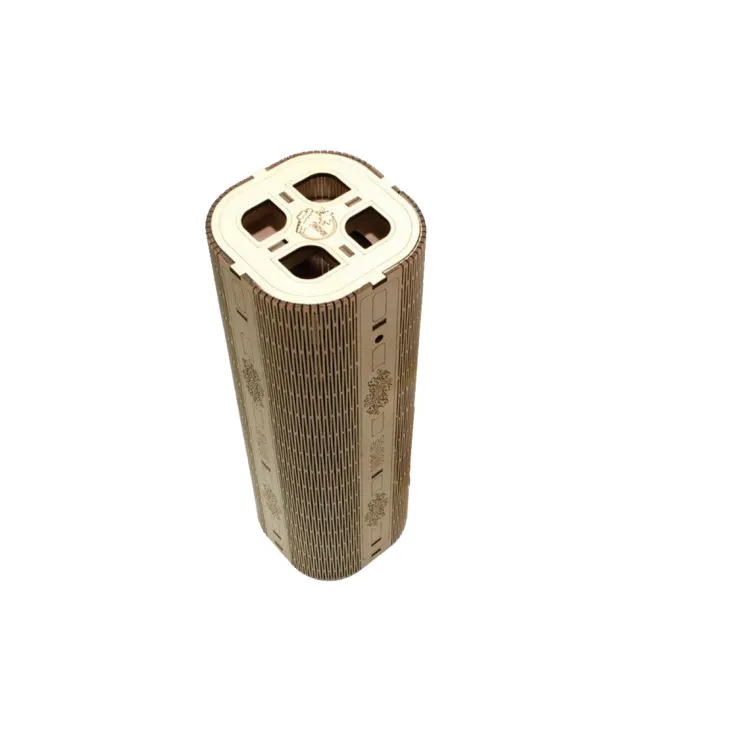 Cutie sticla de vin woodmag v5, cilindrica, lemn natur, 9.6 x 9.6 x 36 cm
