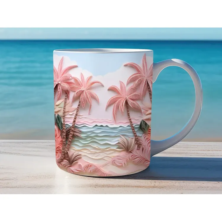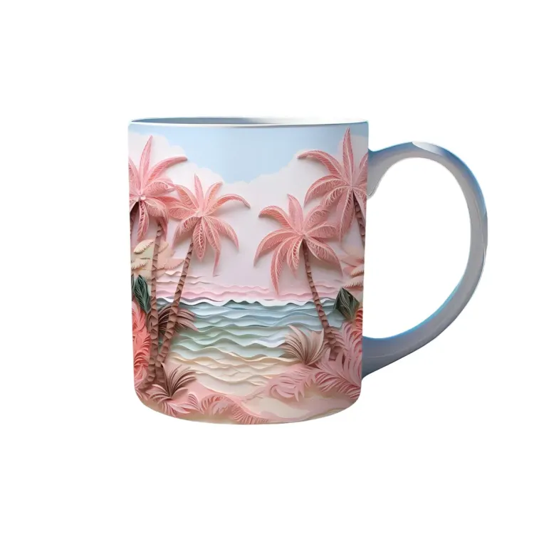 Cana cu imagine 3d Peisaj Tropical, 330ml, ceramica CN19