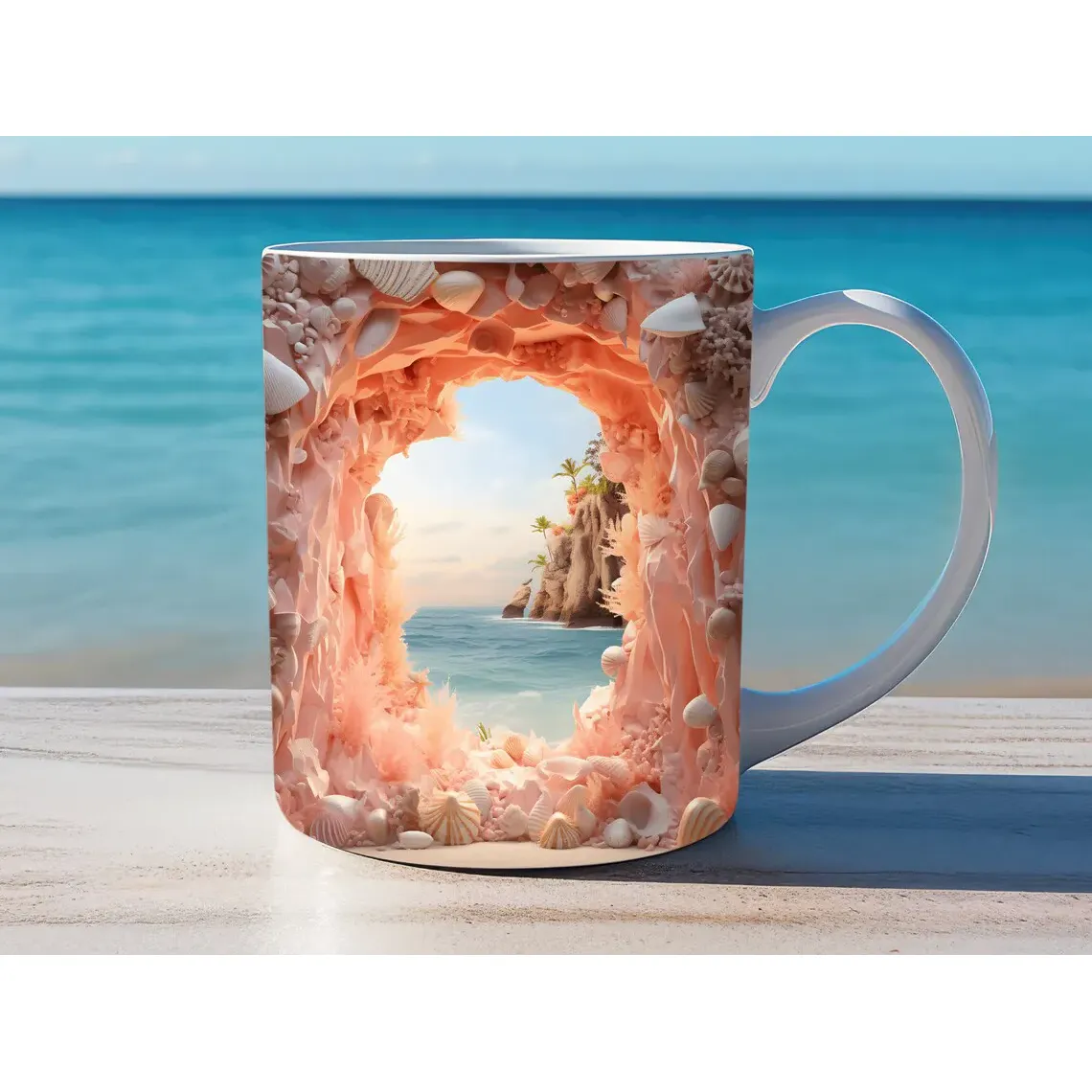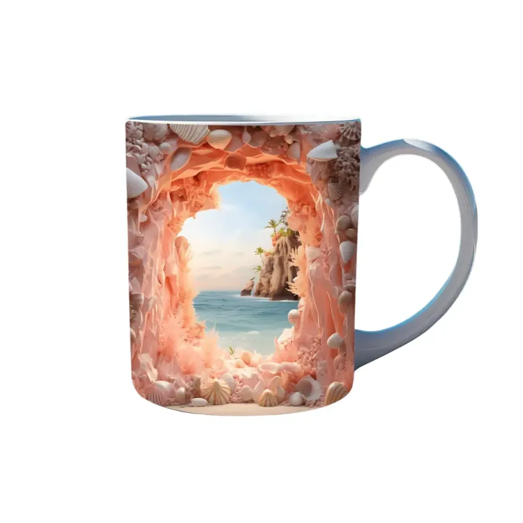 Cana cu imagine 3d Peisaj Tropical, 330ml, ceramica CN25