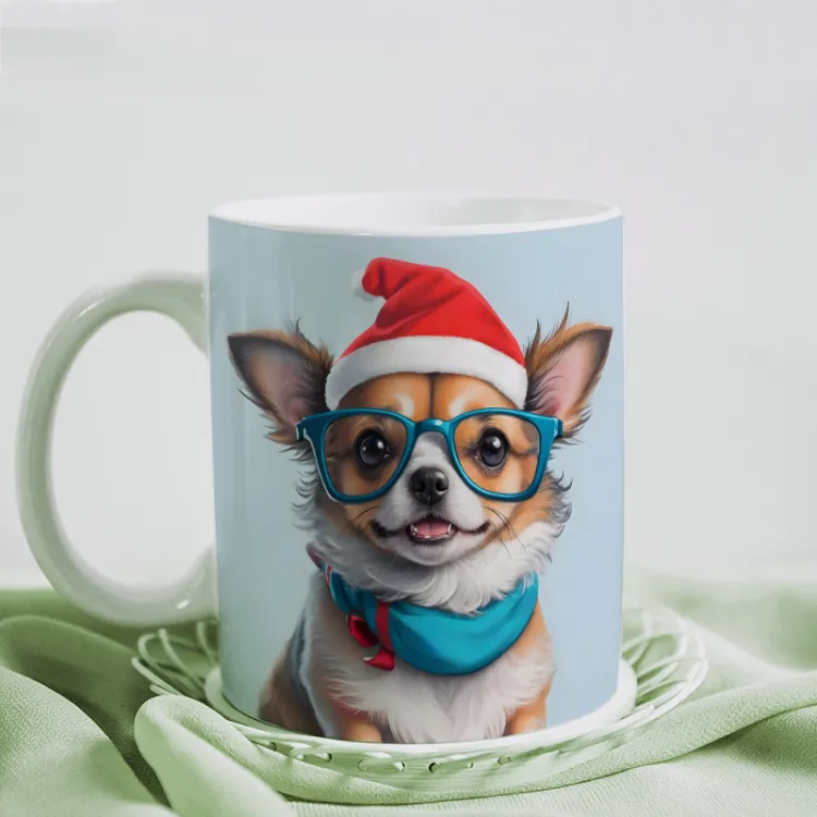 Cana de craciun model catelus cu ochelari 8