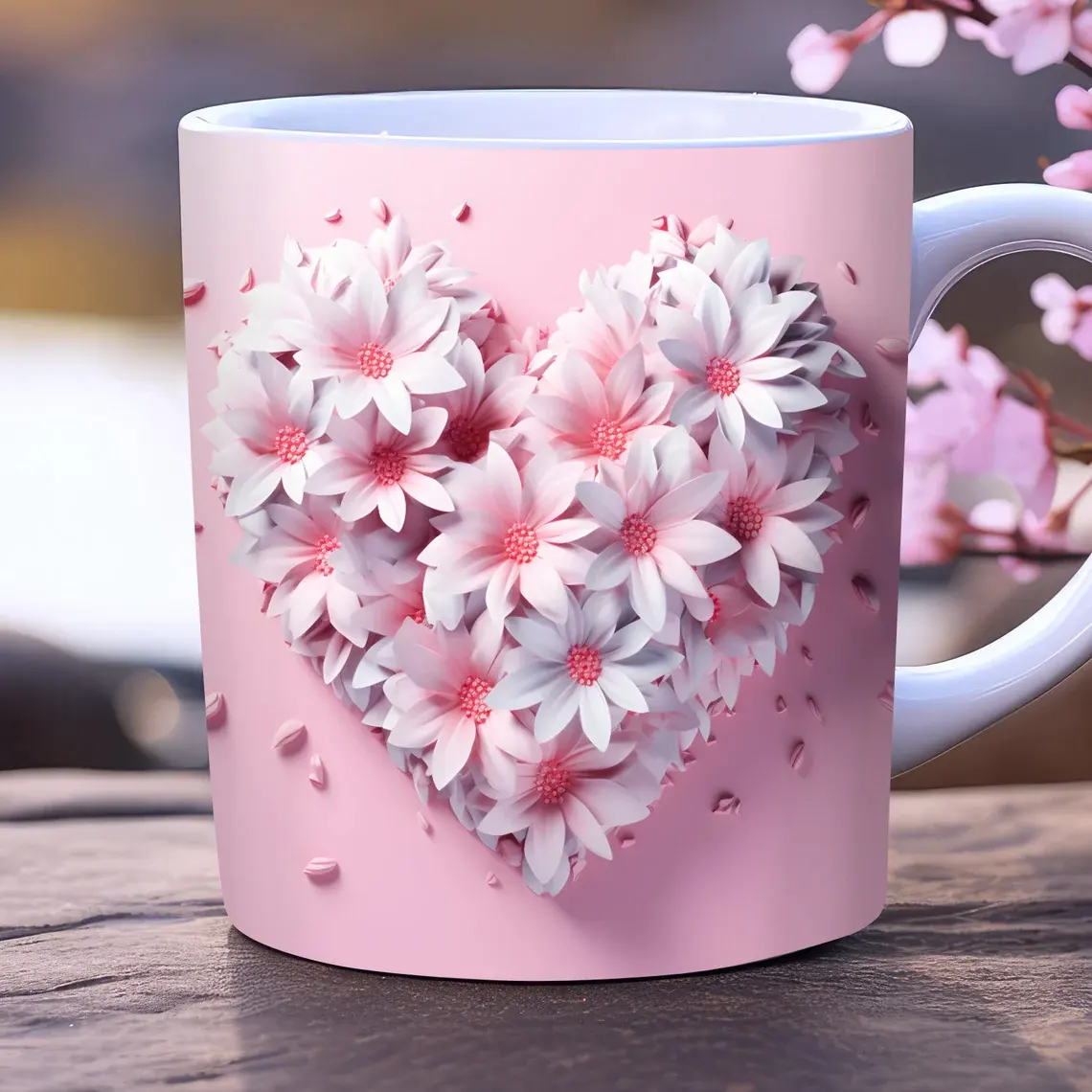 Cana pesonalizabila cu imagine 3d Inima Roz 330ml ceramica CN04