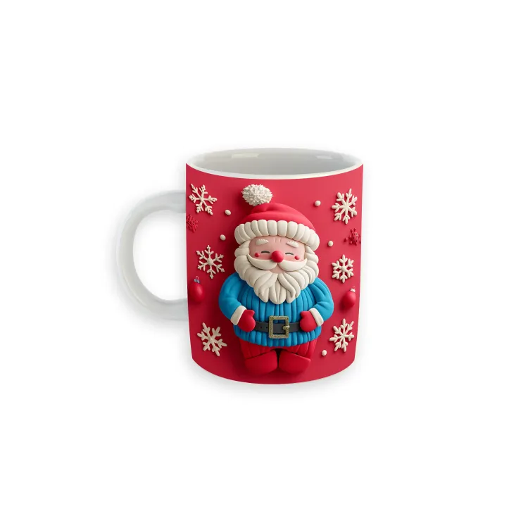 Cana pesonalizabila cu imagine 3d Mos Craciun Bleu-Rosu si fulgi de zapada 330ml ceramica CC05