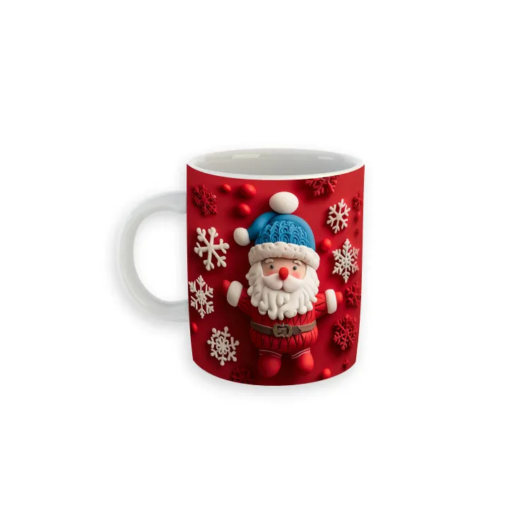 Cana pesonalizabila cu imagine 3d Mos Craciun Rosu-Verde si fulgi de zapada 330ml ceramica CC22