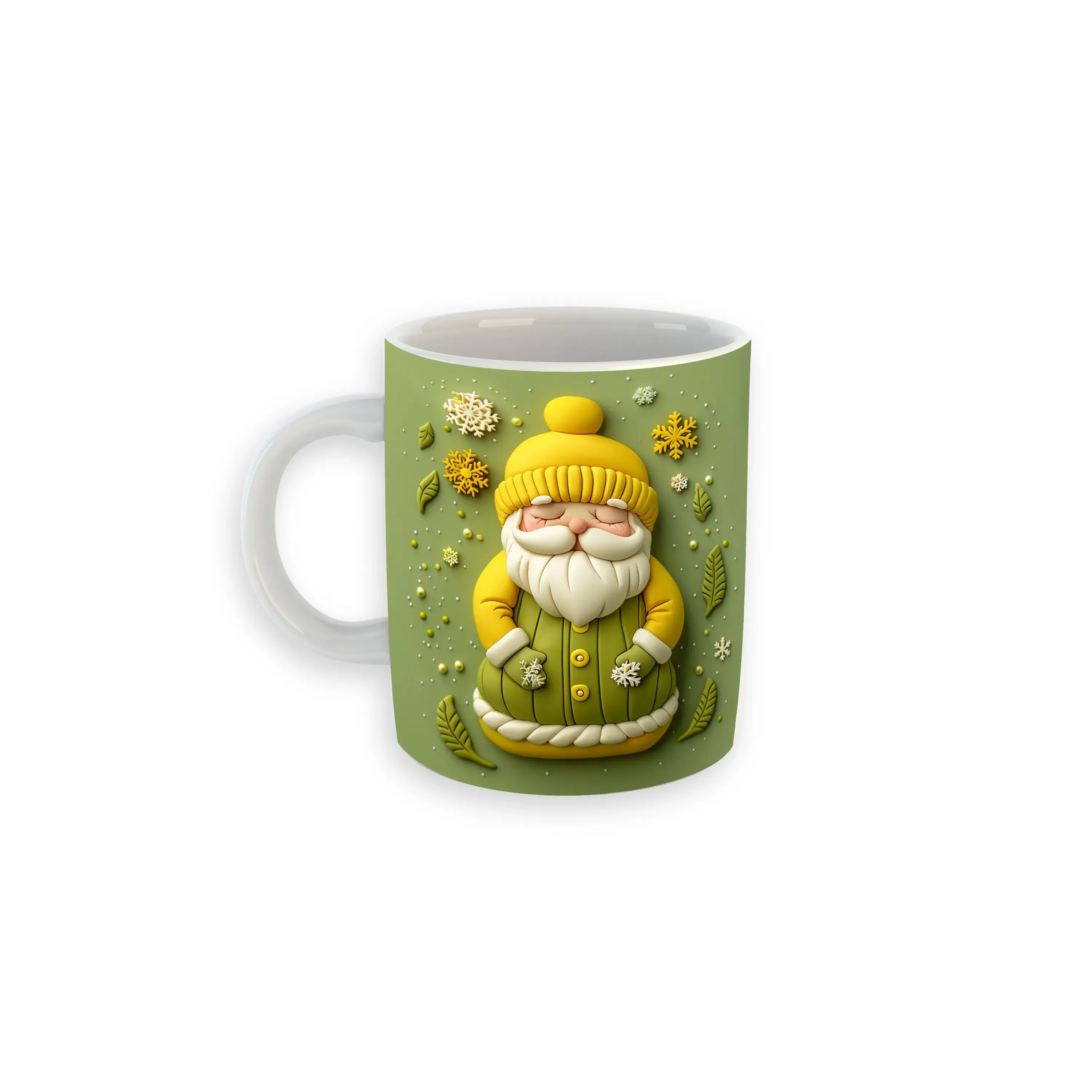 Cana pesonalizabila cu imagine 3d Mos Craciun verde-galben si fulgi de zapada 330ml ceramica CC12