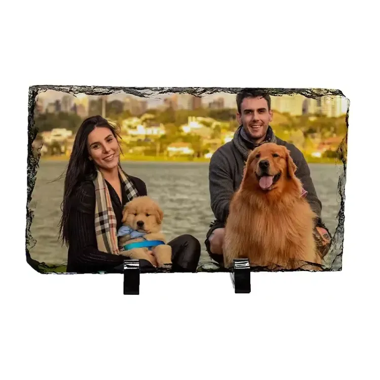 Placă de ardezie dreptunghiulară personalizată cu poză direct pe piatră