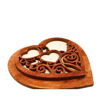 Cutie verghete din lemn WoodMag, Model Inima cu capac 3D model CVR03, dimensiune 10x10cm