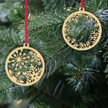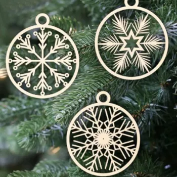 Set globuri ornamentale, 2 buc, WoodMag, fulgi de zapada, Brad de Craciun GB47