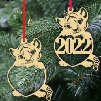 Set globuri ornamentale, 2 buc, WoodMag, pui de tigru, Brad de Craciun GB51