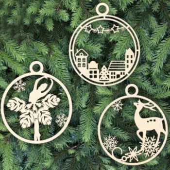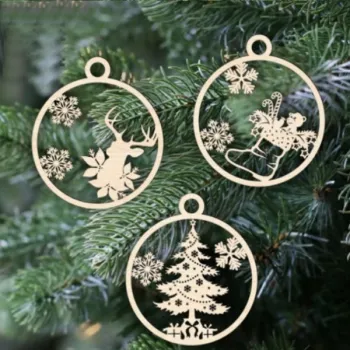 Set globuri ornamentale, 3 buc, WoodMag, Tematica Craciun, GB61