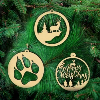 Set globuri ornamentale, 3 buc, WoodMag, Tematica Craciun, GB23