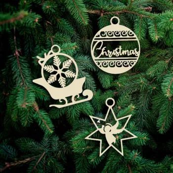 Set globuri ornamentale, 3 buc, WoodMag, Tematica Craciun GB69